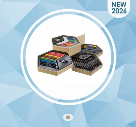 Mākslas komplekts, kas sastāv no koka zīmuļiem, flomāsteriem, krāsām un krītiņiem. Viss iepakots videi draudzīgā kartona kastē. Lieliska un radoša izklaide bērniem. Uz kastes iespējams uzdrukāt arī Jūsu logo.