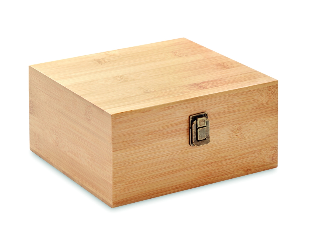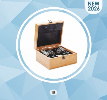 Luksusa glāžu komplekts bambusa dāvanu kastē — ideāli piemērots viskijam, džinam, mojito vai citiem dzērieniem. Komplektā ietilpst divas 300 ml glāzes, astoņi atkārtoti lietojami akmens ledus kubi ar kokvilnas maisiņu glabāšanai un knaiblēm. Tā kā bambuss ir dabīgs materiāls, iespējamas nelielas krāsas un izmēra atšķirības, kas piešķir katram komplektam unikālu raksturu.